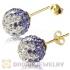 10mm Blue Czech Crystal Ball Gold Plated Silver Stud Earrings Wholesale