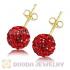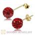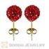 8mm Magenta Czech Crystal Ball Gold Plated Silver Stud Earrings Wholesale