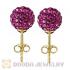 8mm Purple Czech Crystal Ball Gold Plated Silver Stud Earrings Wholesale