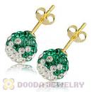 8mm Green-White Czech Crystal Ball Gold Plated Silver Stud Earrings Wholesale