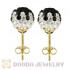 8mm Blue-White Czech Crystal Ball Gold Plated Silver Stud Earrings Wholesale