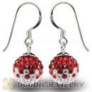 10mm White-Red Czech Crystal Ball Sterling Silver Hook Earrings Wholesale