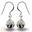 8mm Black-White Czech Crystal Ball Sterling Silver Hook Earrings Wholesale