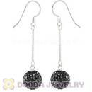 10mm Black-White Czech Crystal Ball Sterling Silver Dangle Earrings Wholesale