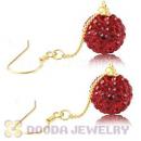 10mm Red Czech Crystal Ball Gold Plated Silver Dangle Earrings Wholesale