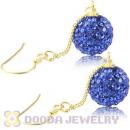 10mm Blue Czech Crystal Ball Gold Plated Silver Dangle Earrings Wholesale