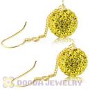 10mm Yellow Czech Crystal Ball Gold Plated Silver Dangle Earrings Wholesale