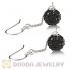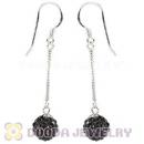 8mm Black-White Czech Crystal Ball Sterling Silver Dangle Earrings Wholesale