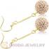 10mm Green-White Czech Crystal Ball Gold Plated Silver Dangle Earrings Wholesale