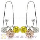 10mm Pink Czech Crystal Ball Gold Plated Silver Dangle Earrings Wholesale