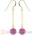 8mm Purple Czech Crystal Ball Gold Plated Silver Dangle Earrings Wholesale