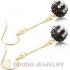 8mm Black-White Czech Crystal Ball Gold Plated Silver Dangle Earrings Wholesale