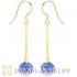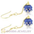 8mm Blue Czech Crystal Ball Gold Plated Silver Dangle Earrings Wholesale