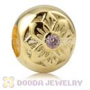 Gold Plated Sterling Silver Flower Charm Beads With Pink Stone