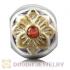 Antique Sterling Silver Flower Charm Beads With Orange Stone