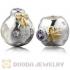 Gold Plated Sterling Silver Christmas Ball Beads With Clear Stone