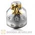 Gold Plated Sterling Silver Christmas Ball Beads With Clear Stone