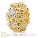 Gold Plated Sterling Silver Charm Beads With Clear Stone