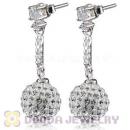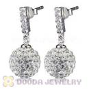 10mm Czech Crystal Ball Dangle Earrings With Sterling Silver Inlay CZ Hook