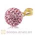 Gold Plated Silver 10mm Pink Czech Crystal Pendants Wholesale