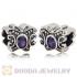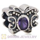 Antique Sterling Silver Butterfly Charm Beads with Pink CZ Stone