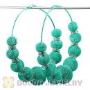 90mm Green Basketball Wives Mesh Hoop Earrings With Spacer Beads Wholesale