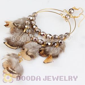 Grizzly Basketball Wives Feather Hoop Earrings With Beads Wholesale
