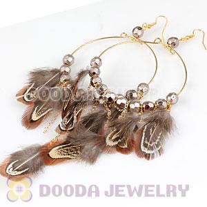 Grizzly Basketball Wives Feather Hoop Earrings With Beads Wholesale