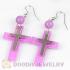 Pink Crystal Basketball Wives Bamboo Cross Hoop Earrings Wholesale