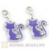 Platinum Plated Alloy European Cat Jewelry Charms With Stone