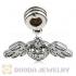 Platinum Plated Alloy European Flying Heart Charms With Stone