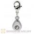 Platinum Plated Alloy European Jewelry Tear Drop Charms With Stone