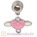 Platinum Plated Alloy Enamel European Heart with Wing Charms Wholesale