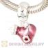 925 Sterling Silver Heart Dangle Charms With Pink Austrian Crystal Wholesale