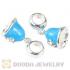 925 Sterling Silver Heart Dangle Charms With Cyan Austrian Crystal Wholesale