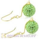 10mm Lime Czech Crystal Ball Gold Plated Silver Dangle Earrings Wholesale