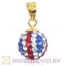 10×11mm 18K Gold plated Sterling Silver Skull Head Ball Bead with Clear Crystal stone