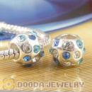 Jewelry silver beads with 90 crystal rhinestones blue Austrian crystal Jewelry beads