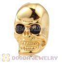 8×14mm 18K Gold plated Sterling Silver Skull Head Bead with Black Crystal stone