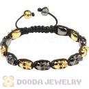 Gold And Gun Black Plated Silver Skull Head Beads Mens String Bracelet