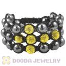 3 Row Yellow Czech Crystal Cross Inspired String Bracelet With Faceted Hematite Beads