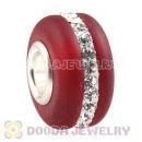 Red Frosted Glass Silver Core Bead With Austrian Crystal For European Bracelet