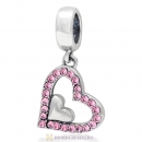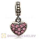 Sterling Silver European Light Rose Pave Heart Dangle With Light Rose Austrian Crystal