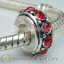 European Sterling Light Siam Pave Heart With Light Siam Austrian Crystal Charm