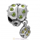 925 Sterling Silver Ladybug with Dangling Smaller Ladybug and Olivine Crystals Charm Bead
