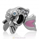 Cute Fish Charm with Clear Crystal and Pink Movable Tail in 925 Sterling Silver
