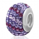 Purple Frosted Glass Silver Core Bead With Austrian Crystal For European Bracelet