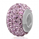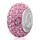 Pink Frosted Glass Silver Core Bead With Austrian Crystal For European Bracelet