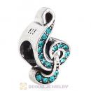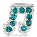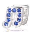 European Sterling Silver Music Note Beads with Blue Zircon Austrian Crystal