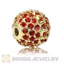 10mm Gold plated Sterling Silver Disco Ball Bead Pave Red Austrian Crystal handmade Style